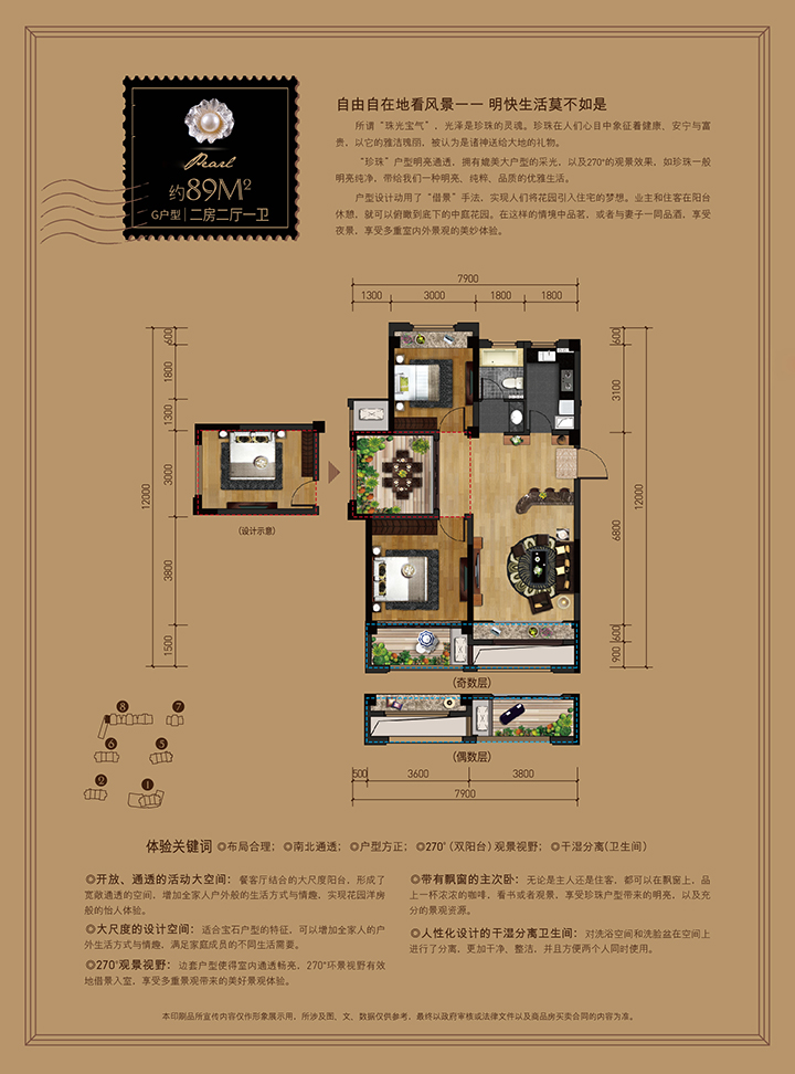 约89方两房两厅一卫珍珠户型