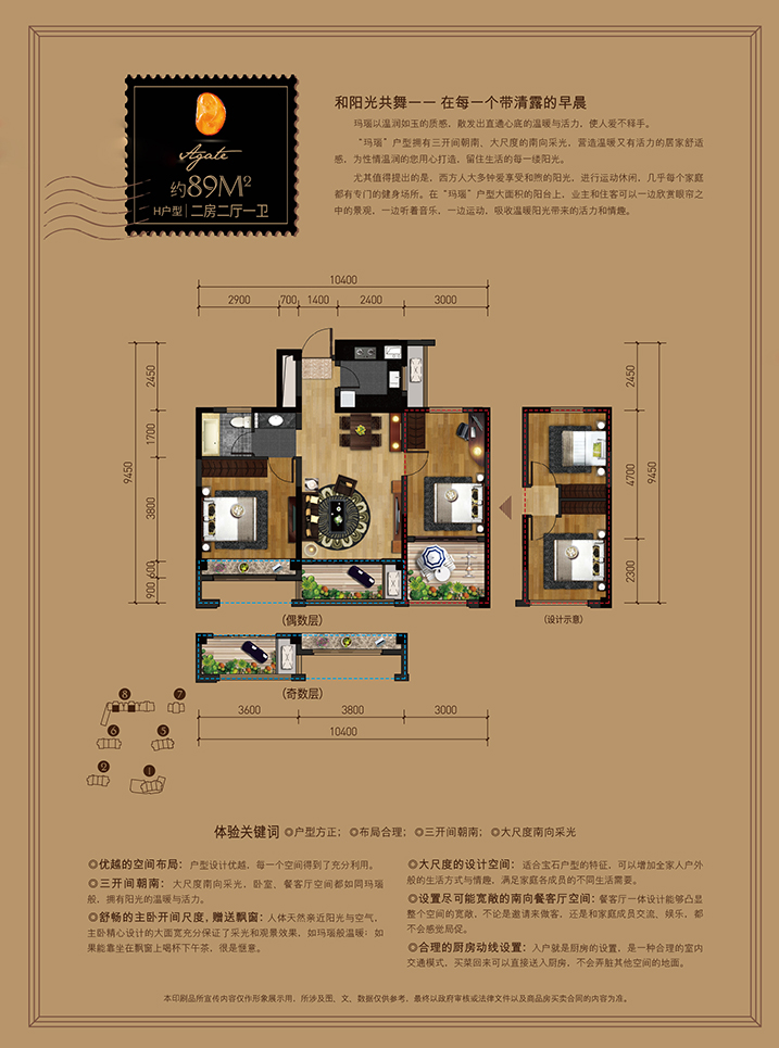 约89方两房两厅一卫玛瑙户型