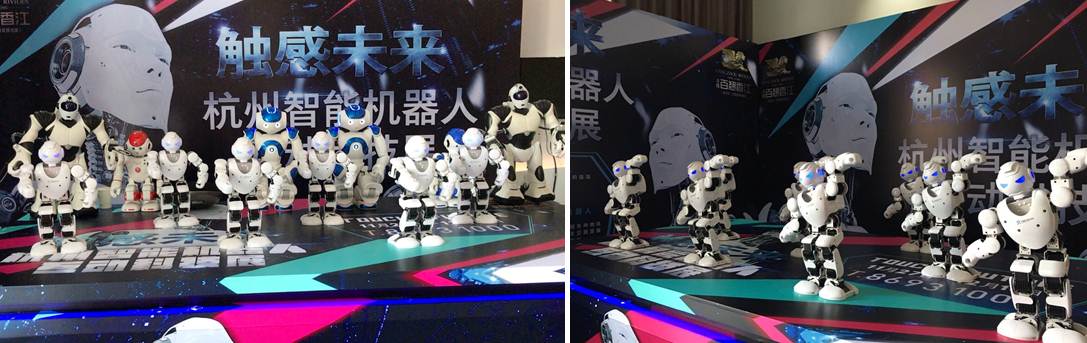 进入活动现场中间,还有一群会跳舞的机器人名为阿尔法,它的身体构造与人体的关节是一模一样的,能模仿人类能做的各种动作,标准的舞姿、可爱的模样,引来现场市民一阵阵掌声,有的小朋友还模仿起来了,逗起现场观众阵阵欢笑。据悉,本次活动方引入了炫酷舞蹈机器人、超级太空巡警、智能教学NAO机器人、青春动感机器人和阿尔法机器人等多个品种,让到现场观展的市民大呼过瘾。