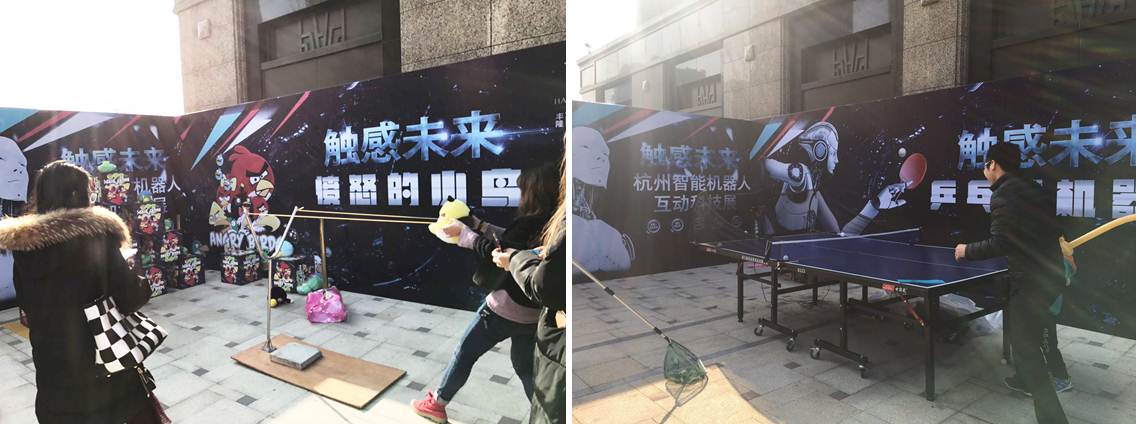 室外现场还有一个会打乒乓球的的机器人引来市民朋友纷纷参与互动。一个接着一个乒乒球轮番打过去,一位乒乒球爱好者好似有些“疲倦”,而机器人却“浑然不觉”。好像一定要争个高下似的。参与者们只好轮番上阵,拼出个“输赢”来。